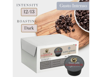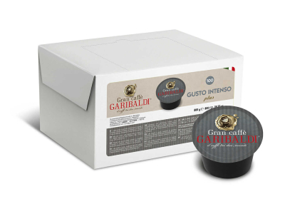 В коробке 100 капсул, предназначенных для капсульных кофемашин Lavazza Blue® для заваривания 100 чашек кофе GARIBALDI Gusto Top.