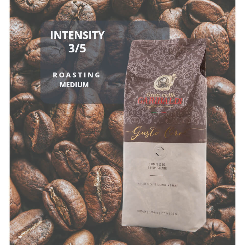 Кофейные зерна GARIBALDI Gusto Oro — это яркая, пробуждающая смесь лучших зерен ROBUSTA из Вьетнама и Уганды, богатых кофеином и антиоксидантами, и зерен ARABICA из Бразилии и Эфиопии.